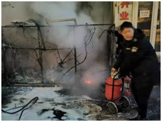 20點(diǎn)56分,監(jiān)控室負(fù)責(zé)人徐志民,保安班長(zhǎng)孫永升,隊(duì)員馮玲瓏、孫永翔,家屬樓物業(yè)負(fù)責(zé)人劉兆彥及家屬樓值班人員組成的救火隊(duì)伍迅速趕到現(xiàn)場(chǎng),由監(jiān)控室負(fù)責(zé)人徐志民單位現(xiàn)場(chǎng)指揮。由于現(xiàn)場(chǎng)火勢(shì)較大,近三米高的線路已經(jīng)被完全燒毀,為避免發(fā)生二次爆炸及更為嚴(yán)重的后果,徐志民指揮大家先用滅火器將火情進(jìn)行控制,并將液化氣罐從火場(chǎng)中搶救出來,避免了液化氣罐發(fā)生爆炸,此時(shí)張主任、王主任、宮臣、隊(duì)長(zhǎng)肇興柱等人先后抵達(dá)火災(zāi)現(xiàn)場(chǎng),對(duì)火災(zāi)撲救工作進(jìn)行了詳細(xì)的部署,而后眾人利用滅火器、消防栓等消防設(shè)施徹底將明火完全撲滅。與此同時(shí)消防車也及時(shí)趕到,并對(duì)火災(zāi)現(xiàn)場(chǎng)進(jìn)行了詳細(xì)確認(rèn),在確保沒有安全隱患后詢問了火災(zāi)發(fā)生的詳細(xì)情況,并對(duì)英勇救火的所有人表達(dá)敬意。沈陽(yáng)廣播電視臺(tái)領(lǐng)導(dǎo)得知此事后十分重視,第一時(shí)間詢問火災(zāi)處置情況及保安隊(duì)員的安全情況,并對(duì)此次火災(zāi)應(yīng)急處置深表贊揚(yáng)。